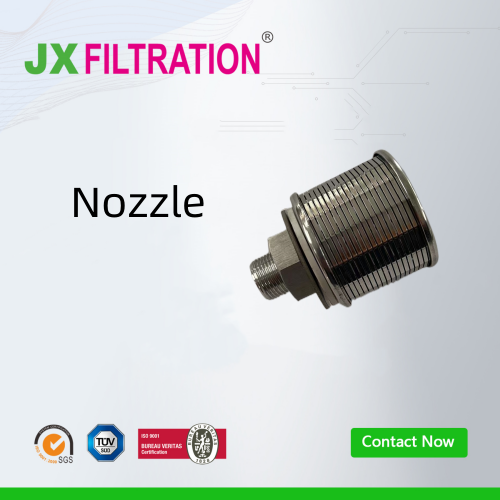 The stainless steel wedge wire nozzle is a derivative product of the stainless steel wedge wire screen tube. Its head is manufactured by winding and welding trapezoidal stainless steel wires, with an additional nozzle cap on top. It is typically connected to the filter tank body by threaded joints or other connection methods.